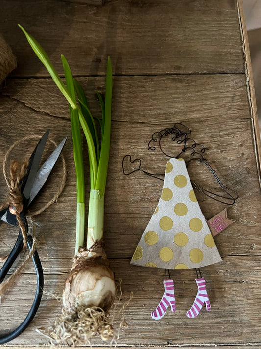 Schutzengel „Good old Friends“ blau gepunktete Stiefelchen