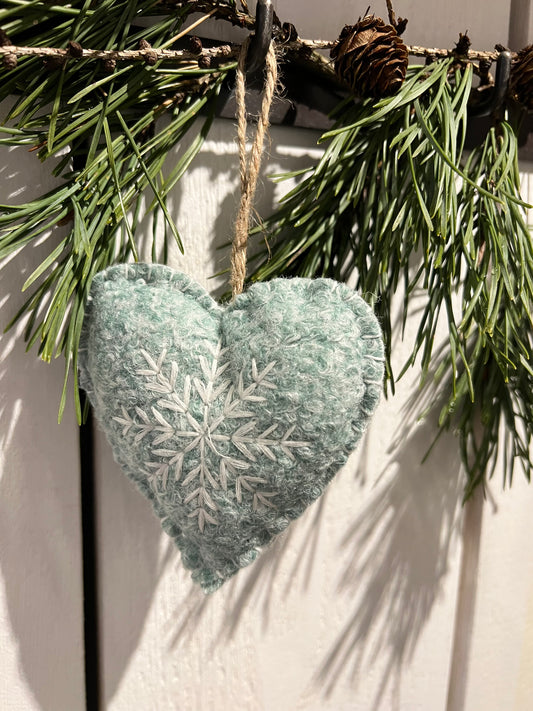 Wollanhänger Herz mit Stickerei