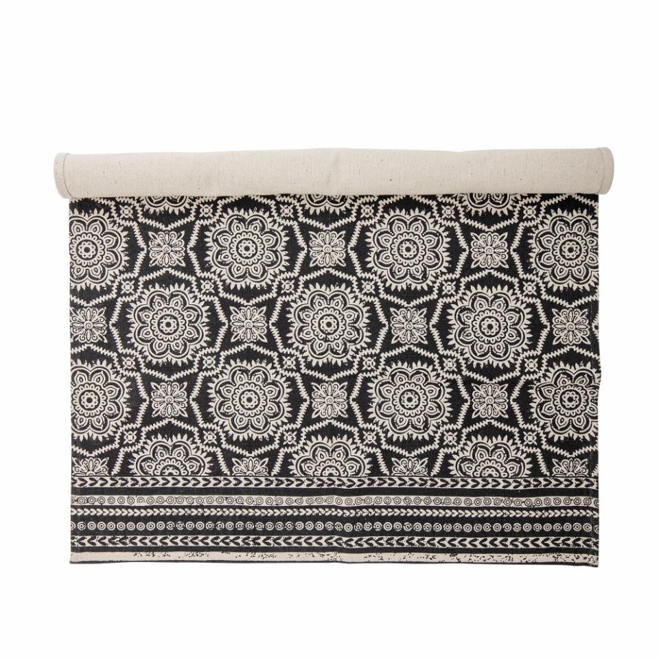 Der Aco Teppich ist ein schöner rechteckiger Teppich mit geometrischem Design in schwarz und natur.