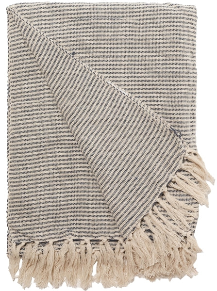 Diese gestreifte Decke in den Farben dunkelblau und beige ist ein stilvolles Accessoire für jedes Zuhause. Das Plaid ist vielseitig einsetzbar, z.B. als Überwurf über Sofa oder Bett oder auch als Tischdecke. Mit ihrem zeitlosen Design verleiht sie jedem Raum einen Hauch von Eleganz.