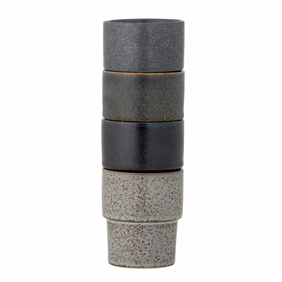 Dieses Set besteht aus 4 Tassen aus Steingut mit glatter Oberfläche und verschiedenen Brauntönen. Sie sind stapelbar und leicht zu lagern. Die Art der Glasur sorgt dafür, dass jede Tasse ein Unikat ist
