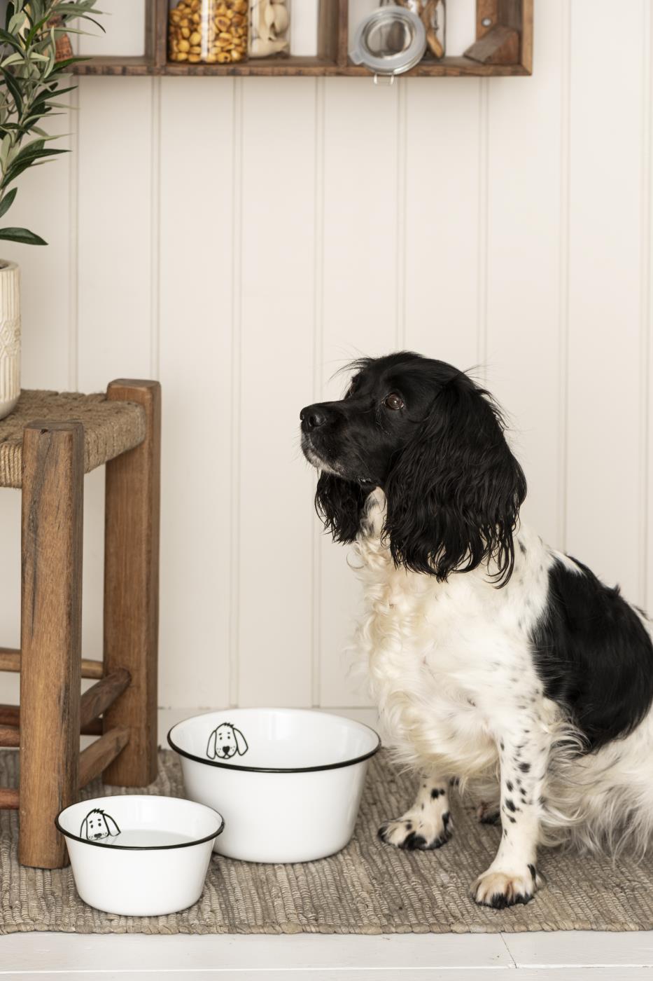 Schöner Emaille-Hundenapf mit süssem Motiv und schlichtem Look, für glückliche Fellnasen.