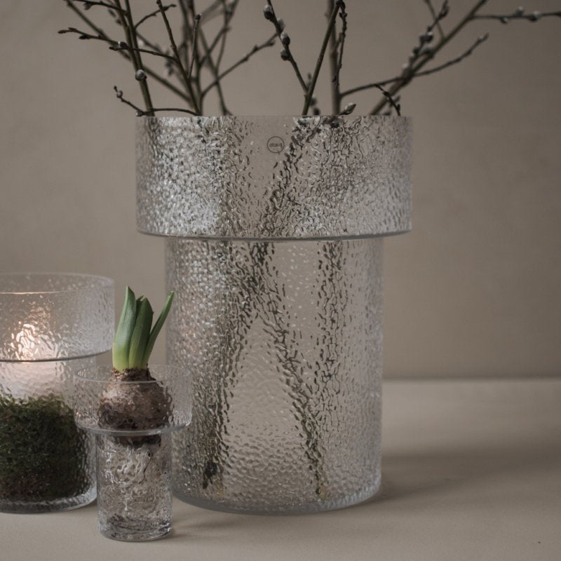 Grosse zeitlose Glasvase mit besonderer Struktur.