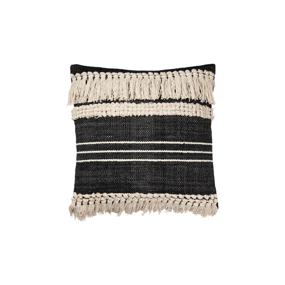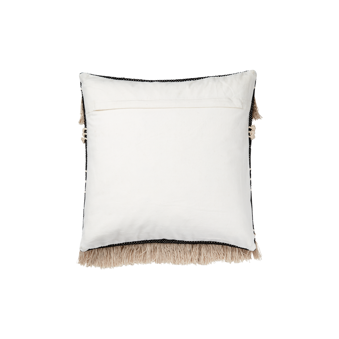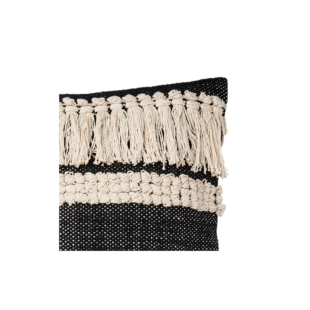 Kissenbezug mit Fransen, schwarz und elfenbeinfarben