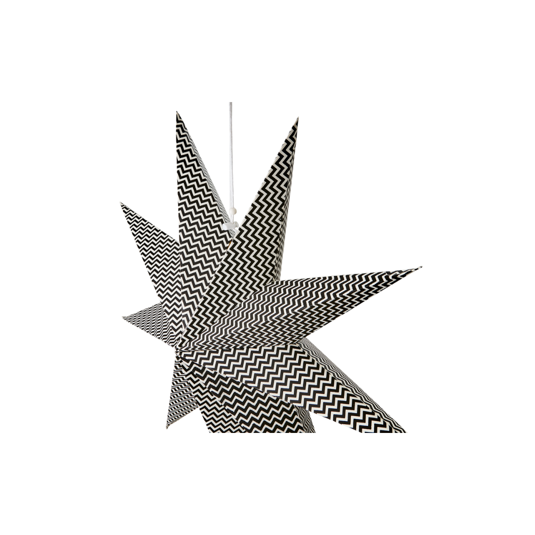 Entdecke den hippen Papier Faltstern in schwarz, weiss. Der einzigartige Faltdesign ermöglicht einfache und schnelle Verwendung dank Kordelstopper. Perfekt als moderne Dekoration für die Weihnachtszeit. Hole dir einfach mal stilvolle Muster in deine Räume. Du kanns ihn Hängen oder auch mal als Hintergrund stellen.
