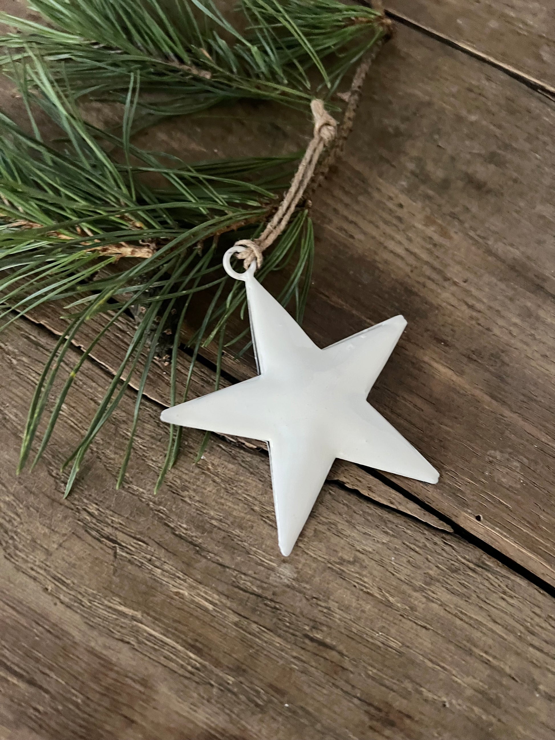 Weisser, kleiner Metallstern mit Emailleoberfläche