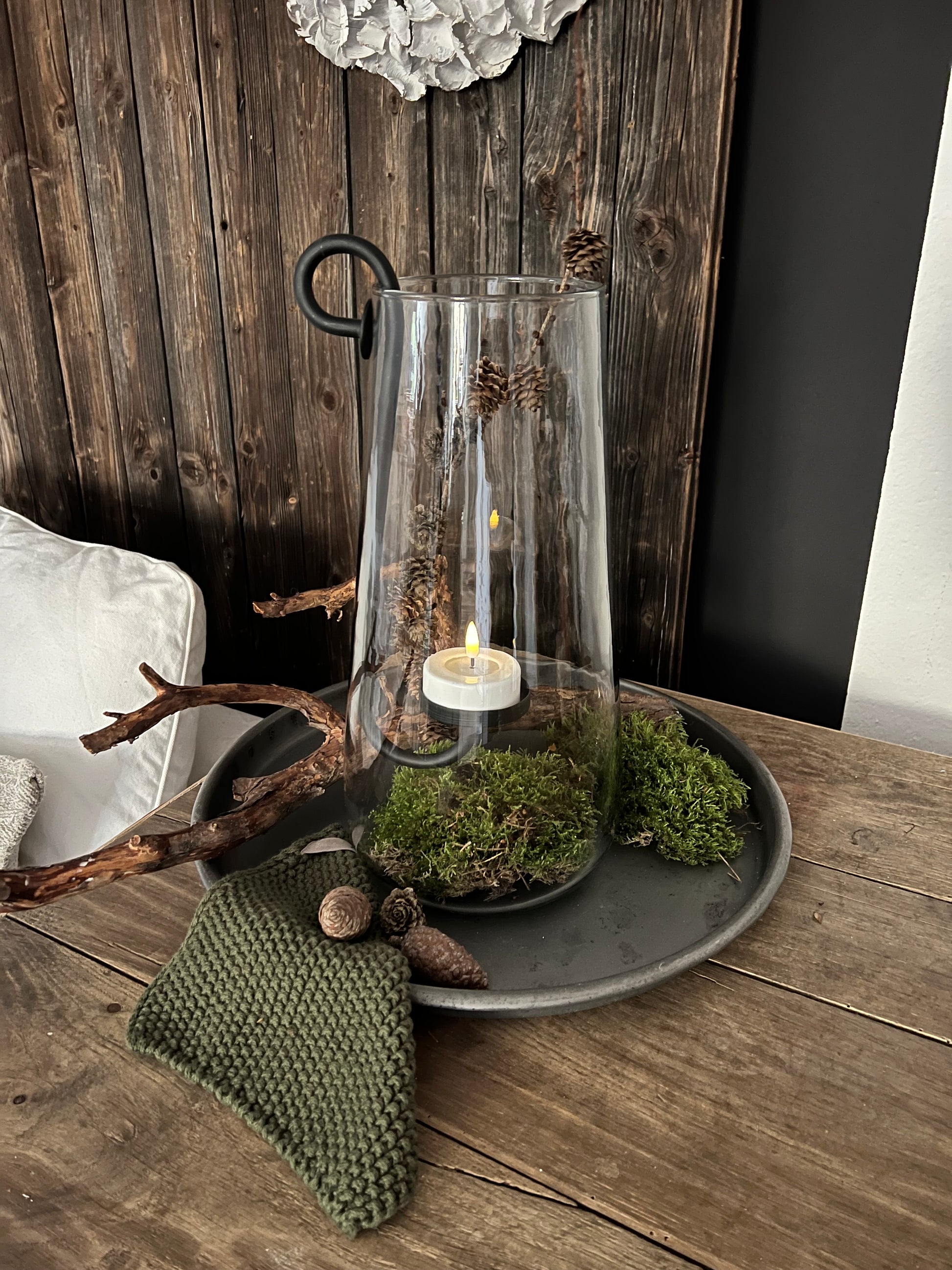 Windlichtglas mit gebogenen Kerzenhalter extra hoch